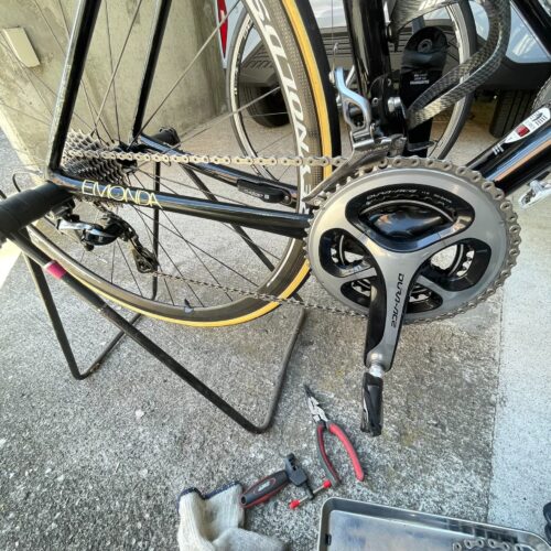 その時に誤ってAmazonから購入したデュラエースCN-HG901(11s)長らく保管していたチェーンをやっとこさで交換します。