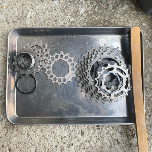 スプロケット錆おとしが完了し、フレームに取り付け。