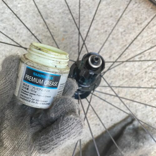 フリーボディの古いグリスをウエスで拭って、デュラグリスを薄く塗りたくる。