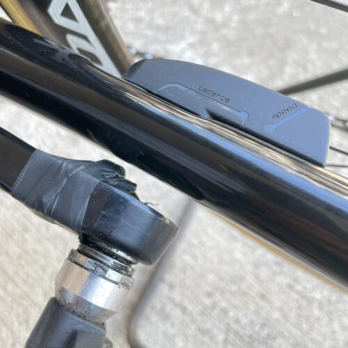 ついでに、ケイデンス計測センサー用の磁石が落ちそうになっていたので、自己融着テープで再取り付け。