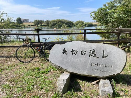 河川敷ゴルフ場横を進んでいくと、矢切りの渡しの案内板がありました。