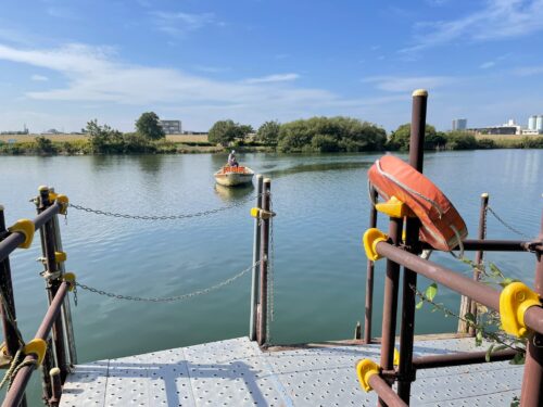 さすがに手漕ぎではなく、エンジンで進んでいました💦