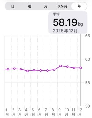 ただ一つだけ前回も同じことを言いましたが、以前(2024年6月ごろ57.2kg)と比べて体重が1kg増えて58.2kgです。