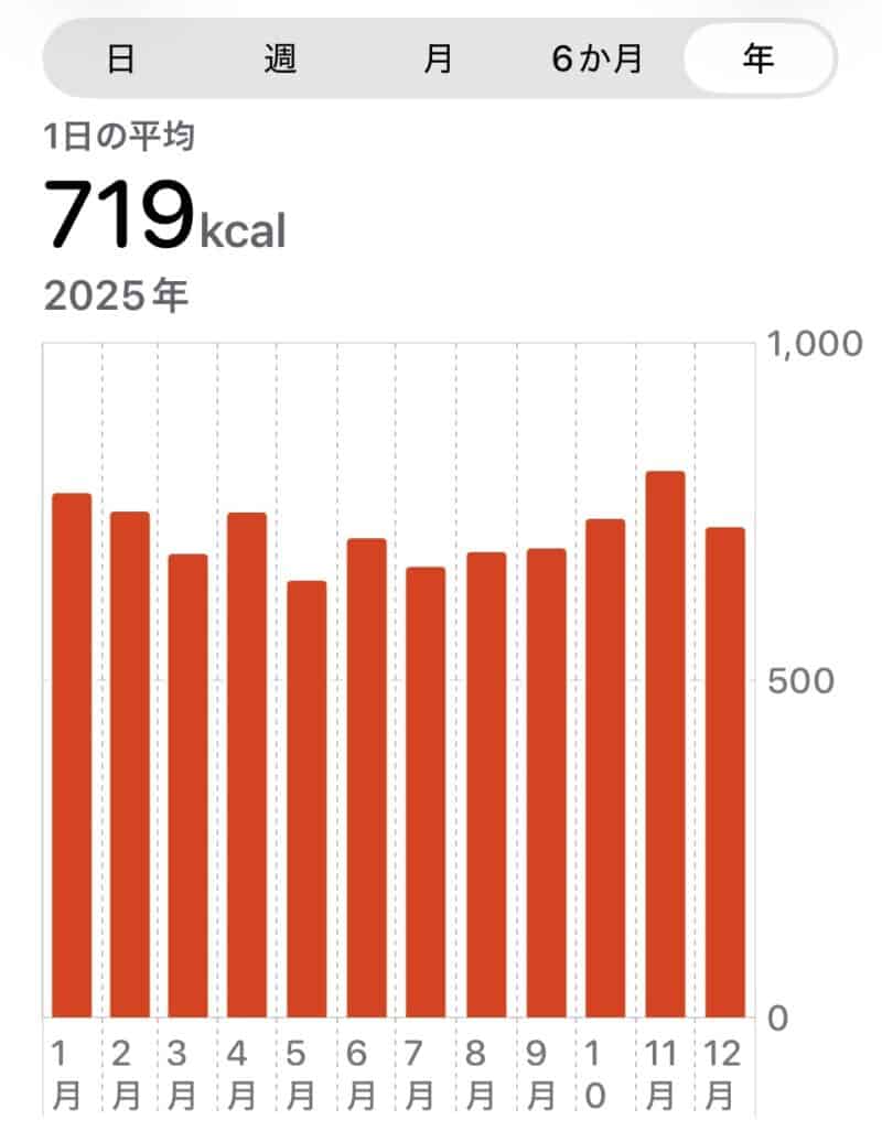 アクティブエネルギーも昨年1年間ほぼ変わらず…