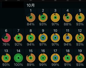 外から2番目の良質な眠りのリングがグリーンが少ないのは眠りが浅いことなのか…