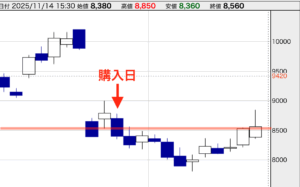 しかしこの日は日経平均-905円、関電工-187円、やはり決算終了高値圏からの下落か…