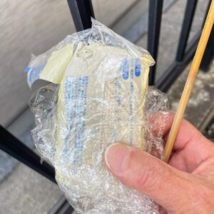 ヘラはないのでまた割り箸を使います。