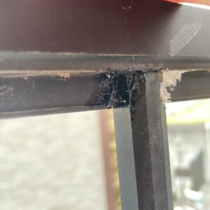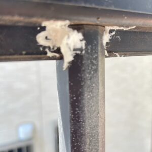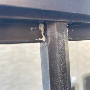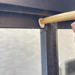 接着力が弱いのでアルミフェンスにはくっつきませんので、隙間にパテを押し込んでいく感じです。