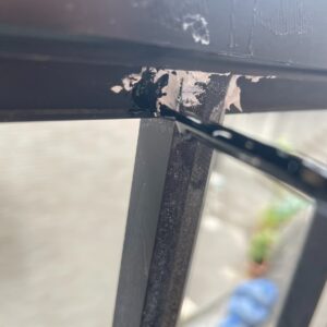 フェンスについた細かな砂や汚れはそのままで、白いシール剤を黒く塗って行ってそこそこいい感じです。