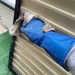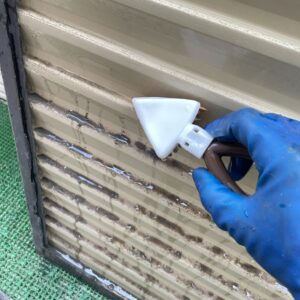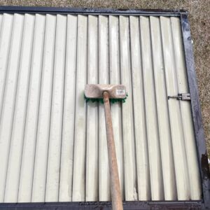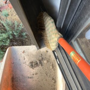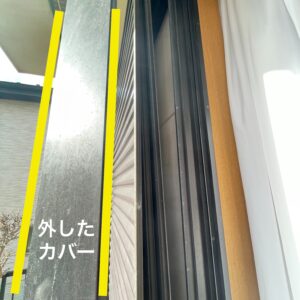 戸袋カバーを取り外し、デッキブラシてゴシゴシ